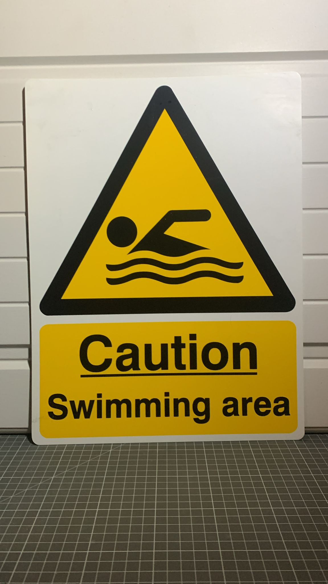 Caution Swimming Area Sign – 300x400mm on 1mm rigid plastic